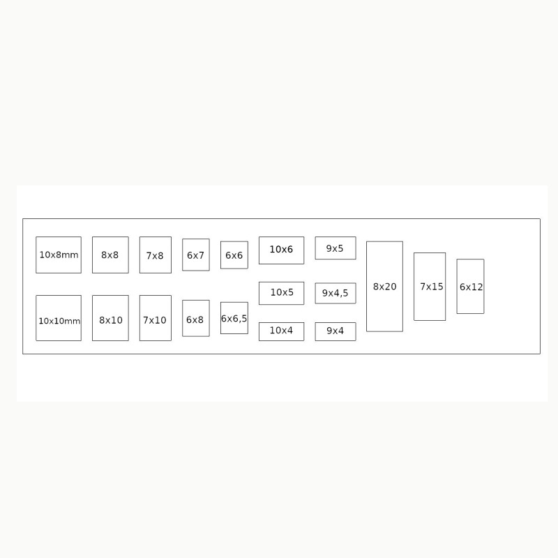 | Size: | 19 tubes, you can see the dimensions from the picture. 3mm mandrel guide for mandrels up to 2,4mm. Material - graphite. Dimensions (LxWxH): 125x30x12mm (1 last piece only) |