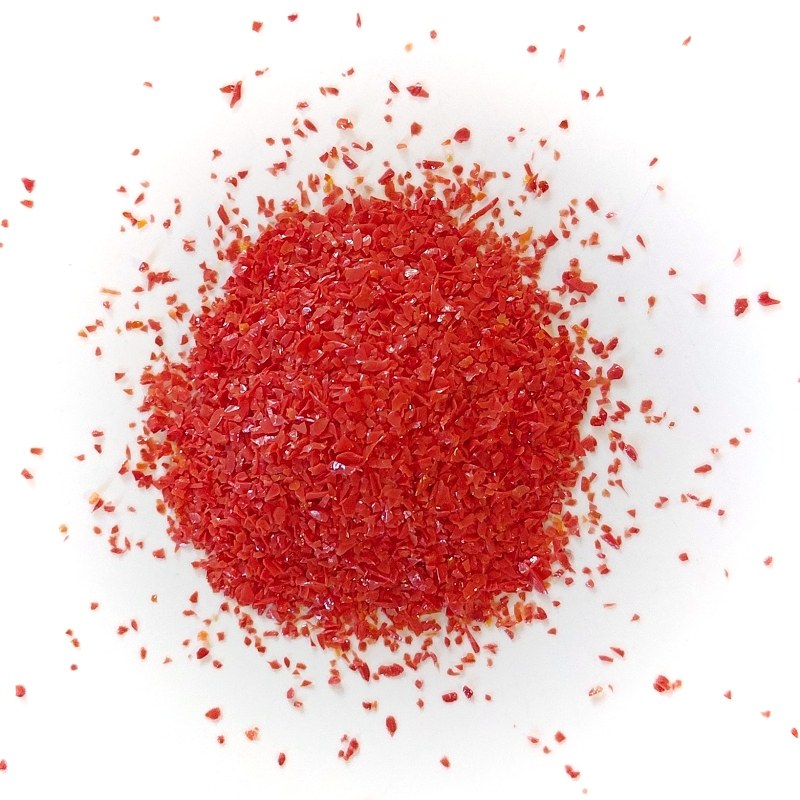 | Title: | Coral red (COE 96, Reichenbach) – frits, fine grain 0,5-1 mm (069RW-frits-1mm) |
